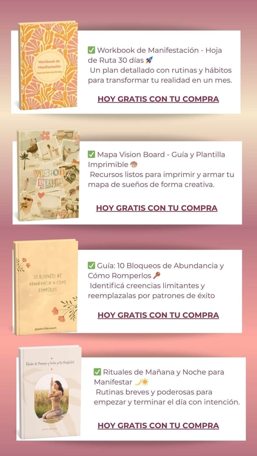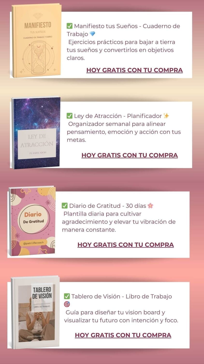 "El bonus del diario de manifestación es una joya. Lo hago de noche y duermo con otra energía. ¡Gracias, Patri!"