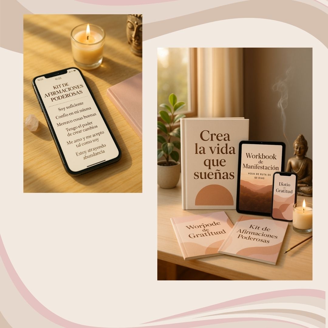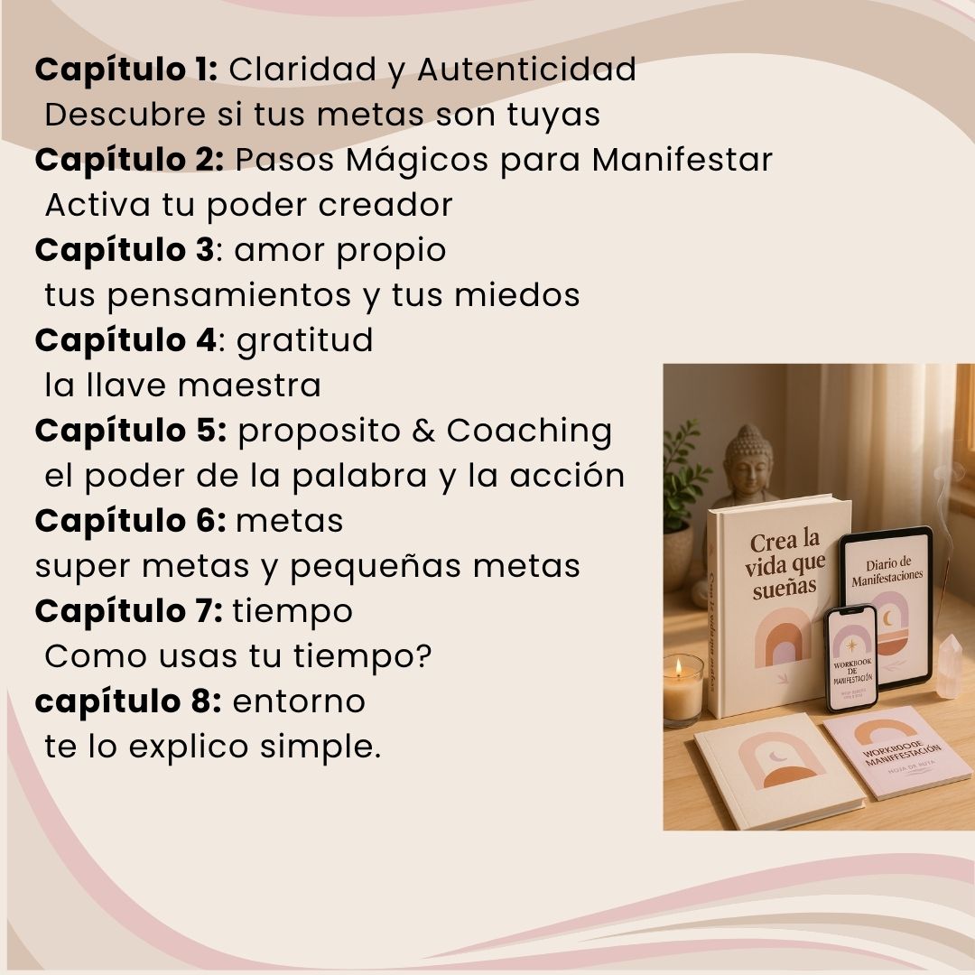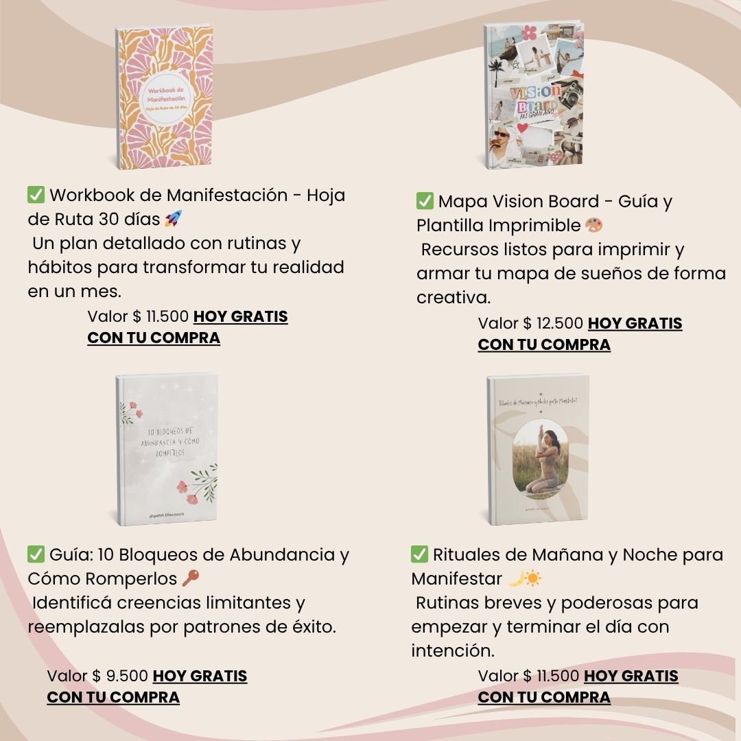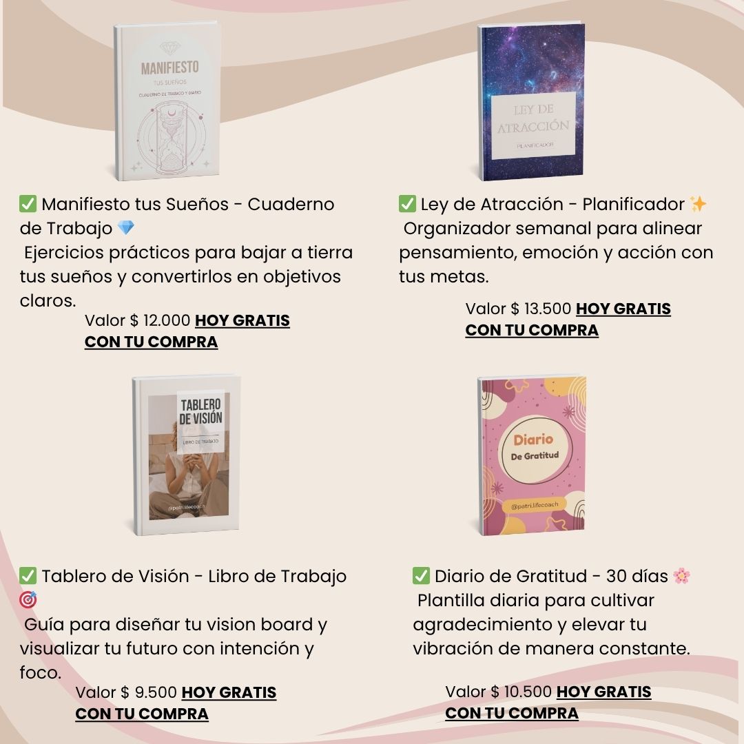 Está creado desde la experiencia y el alma ✨. Combina coaching, gratitud y manifestación con ejercicios simples y aplicables.