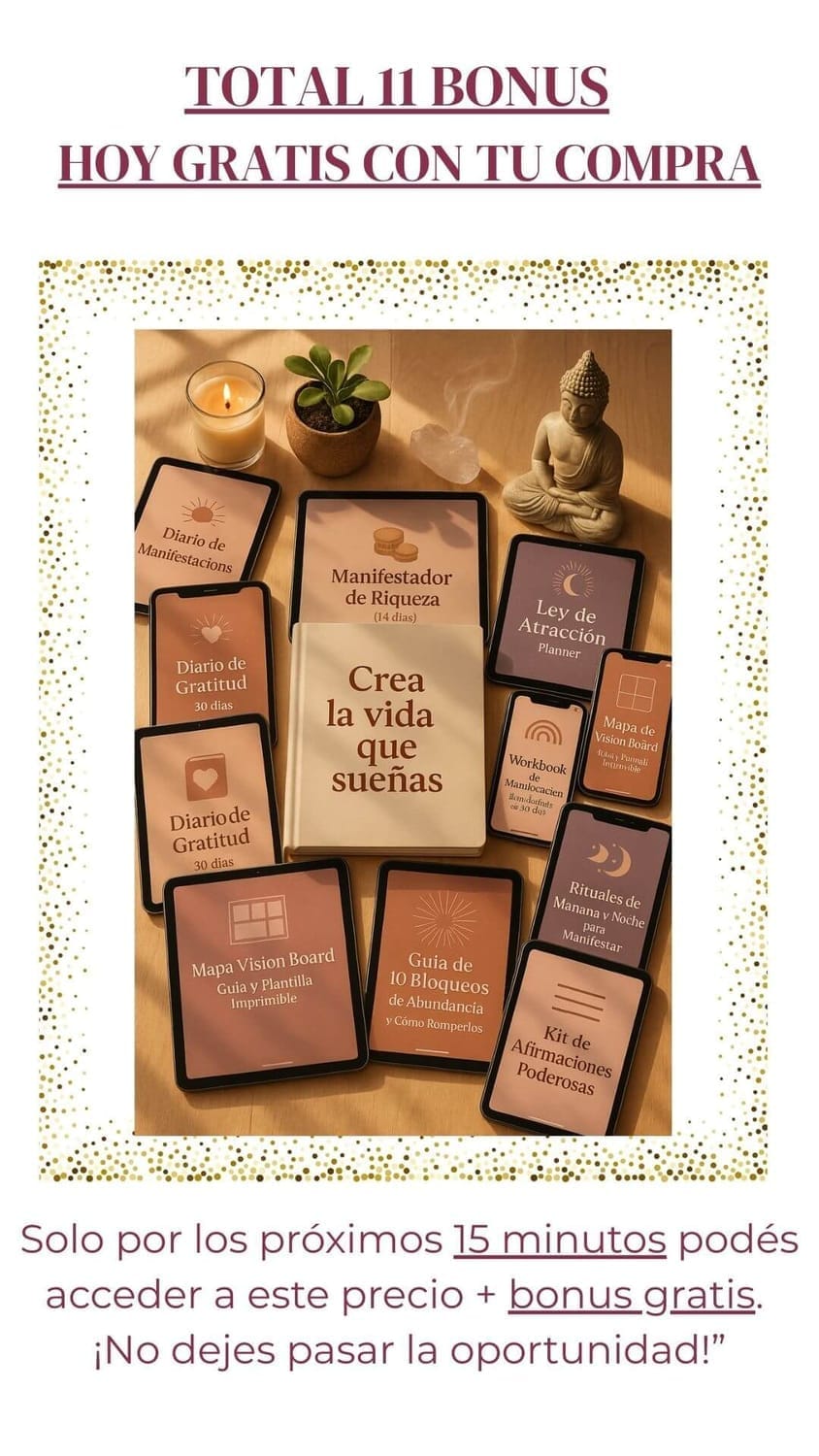 "El bonus del diario de manifestación es una joya. Lo hago de noche y duermo con otra energía. ¡Gracias, Patri!"